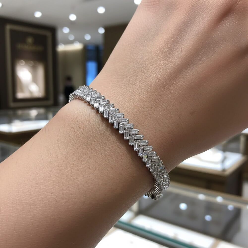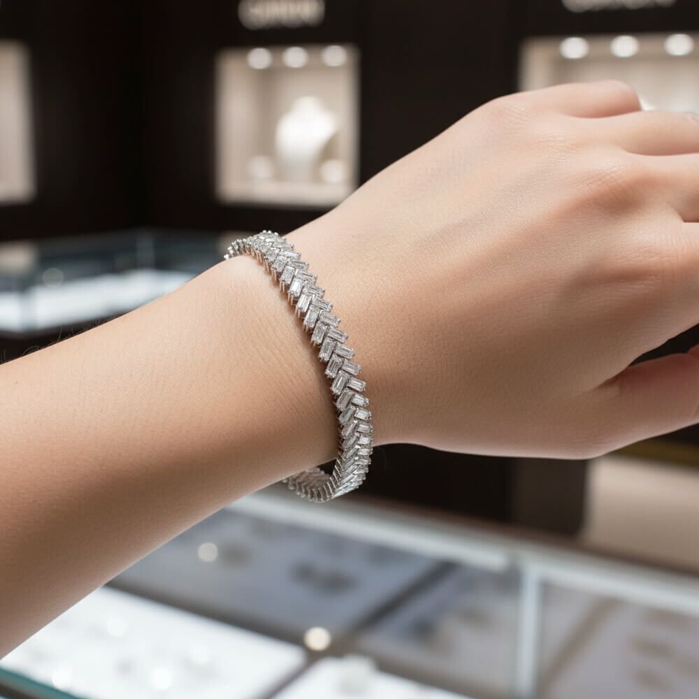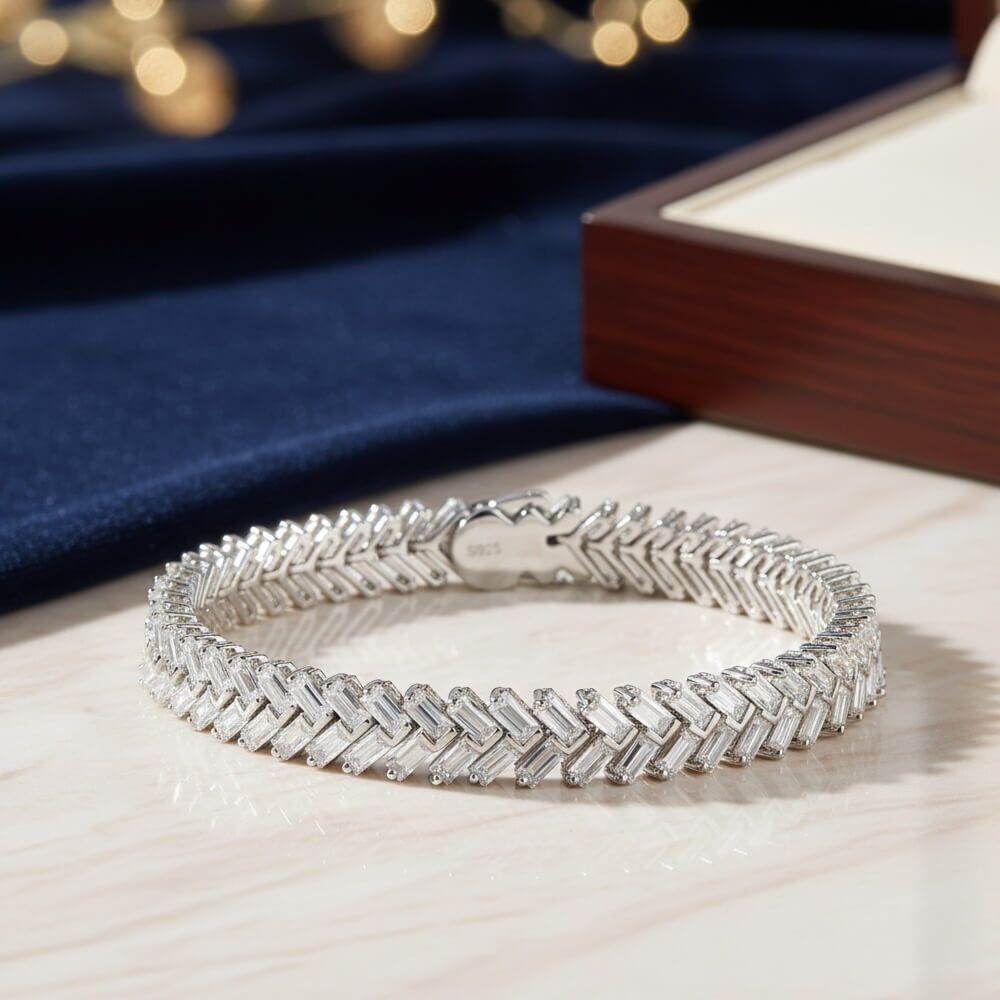 A Symbol of Everlasting Brilliance The moissanite stones in our bracelets are selected for their exceptional clarity and fire. Set against the backdrop of 925 sterling silver, these gems sparkle with an intensity that captures the eye and the imagination. This bracelet isn’t just an accessory; it’s a symbol of enduring beauty and elegance.
