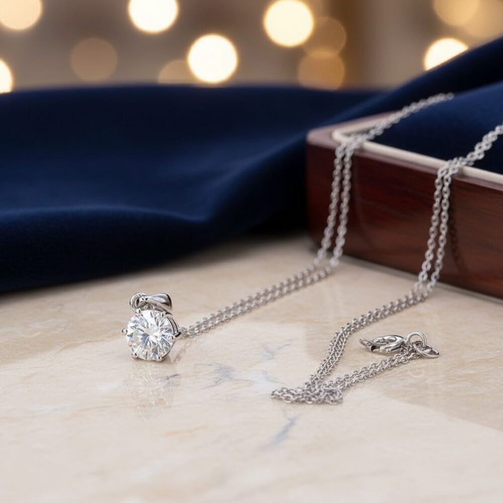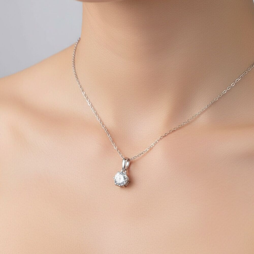 Unveil the essence of sophistication with our Moissanite Necklace in Sterling Silver. This exquisite piece is not just a necklace, but a symbol of elegance and class, designed to add a touch of brilliance to your everyday style and special occasions.