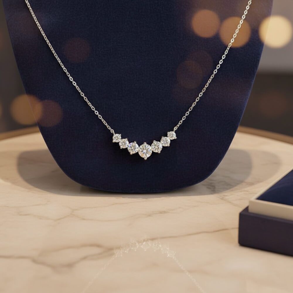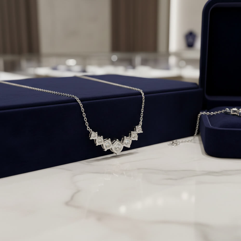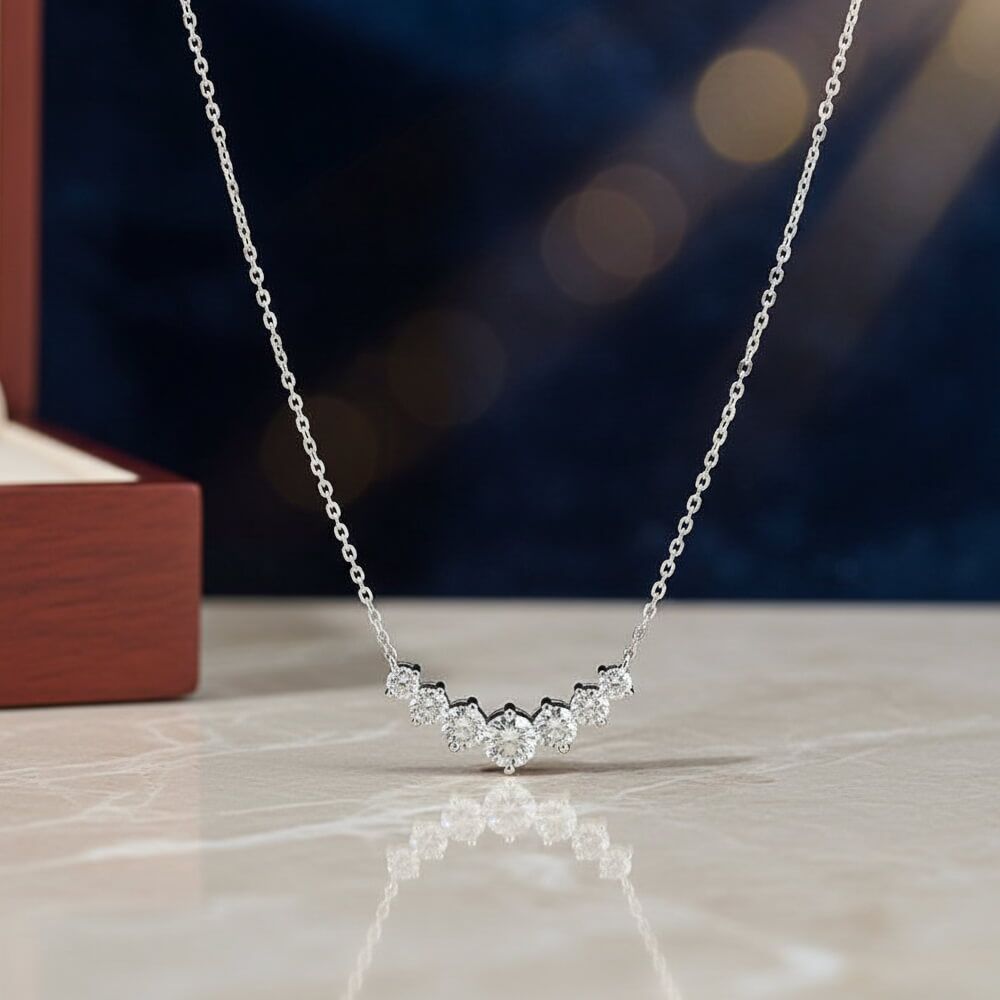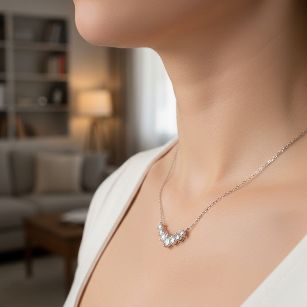 Featuring a beautifully cut Moissanite stone at its heart, this pendant necklace shines with unparalleled brilliance. The Moissanite gem is known for its diamond-like sparkle, making this necklace an ideal choice for those who seek luxury and glamour.
