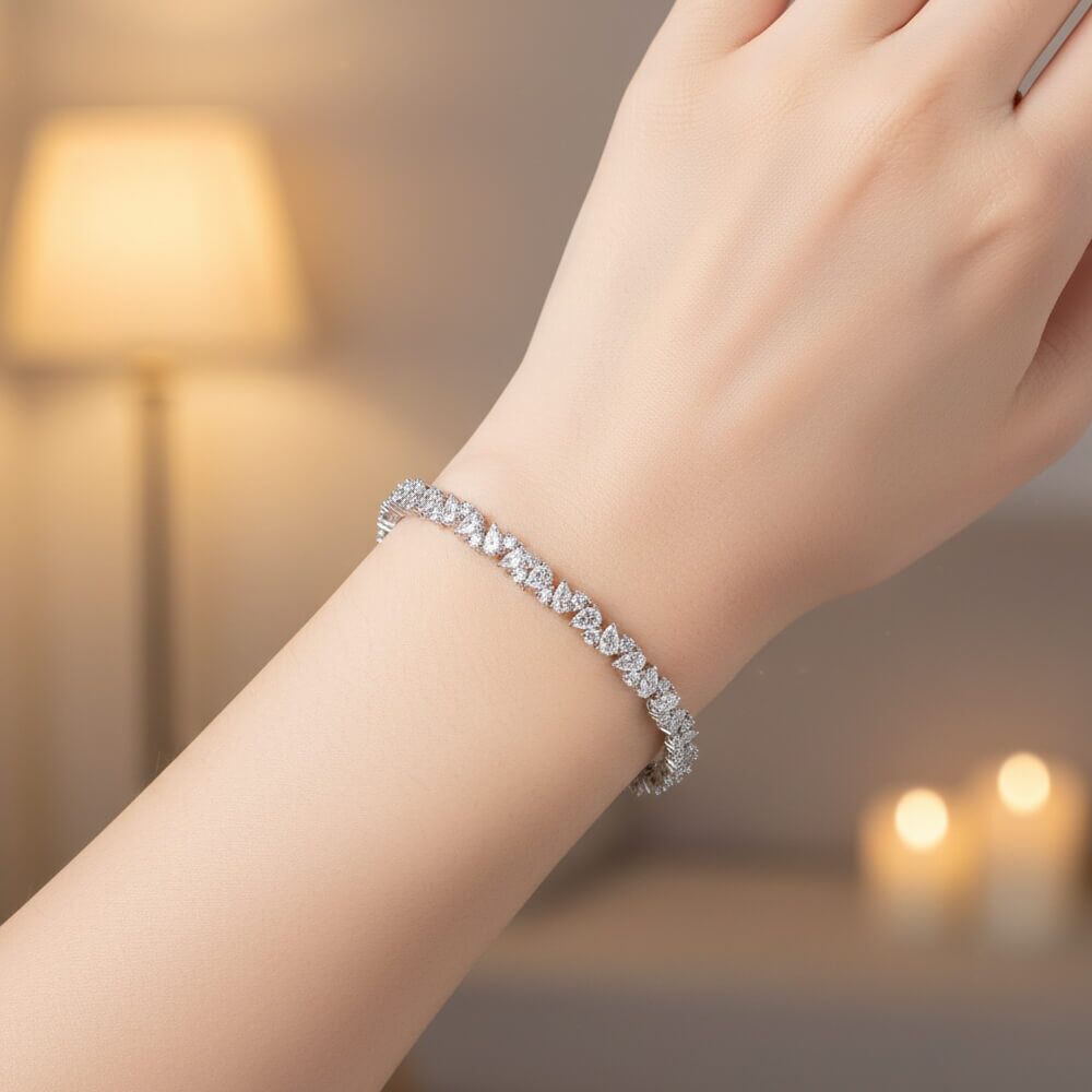 Introducing the Silver Bangle Bracelet Moissanite – a symbol of eternal elegance. This exquisite piece marries the lustre of silver with the brilliance of Moissanite, creating an accessory that transcends fashion trends and becomes a timeless treasure.