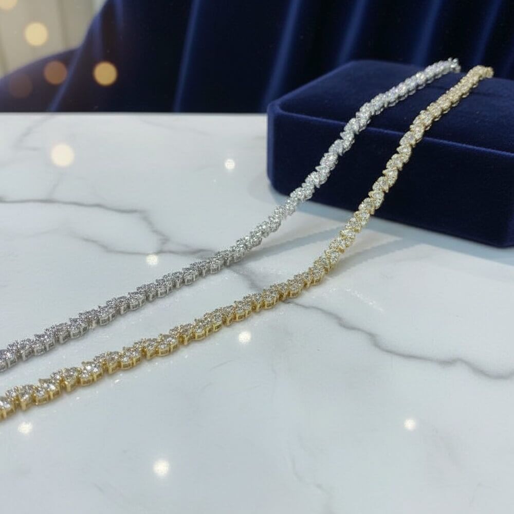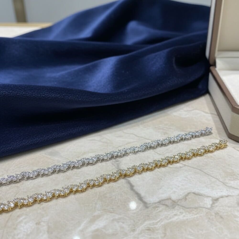 Dazzling Brilliance: Moissanite, the Diamond Alternative Moissanite stones are renowned for their diamond-like brilliance, offering an ethical and more affordable alternative to traditional diamonds. Each stone in this bangle is carefully selected for its fire, brilliance, and clarity, ensuring your bracelet sparkles with unmatched beauty.